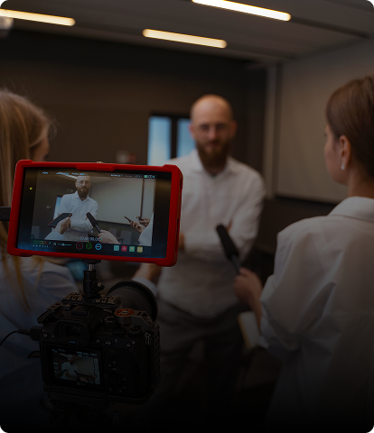 Book our modern studio space along with expert production crews, cameras, lighting, and direction services for interviews, branded content, marketing shoots, and executive recordings.